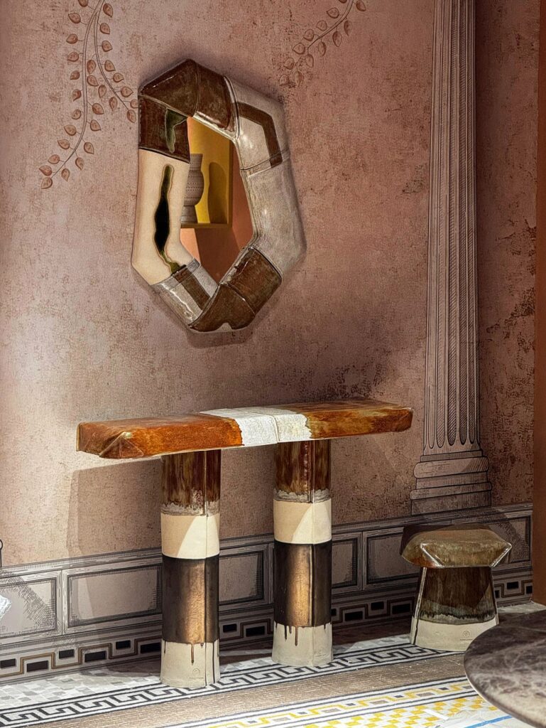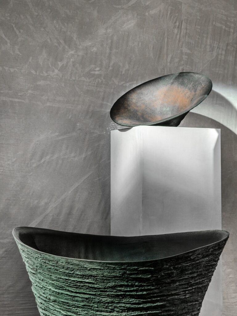Sélectionnés pour l’espace What’s New? In Decor, les pièces de Di Vincenzo Poujoula dialoguent avec une scénographie inspirée de l’architecture néoclassique. La terre est leur langage commun. Le grès, cuit à très haute température, garantit une durabilité et une robustesse. Une approche où la création contemporaine s’inscrit dans une logique presque archéologique : créer aujourd’hui des objets capables de traverser le temps.