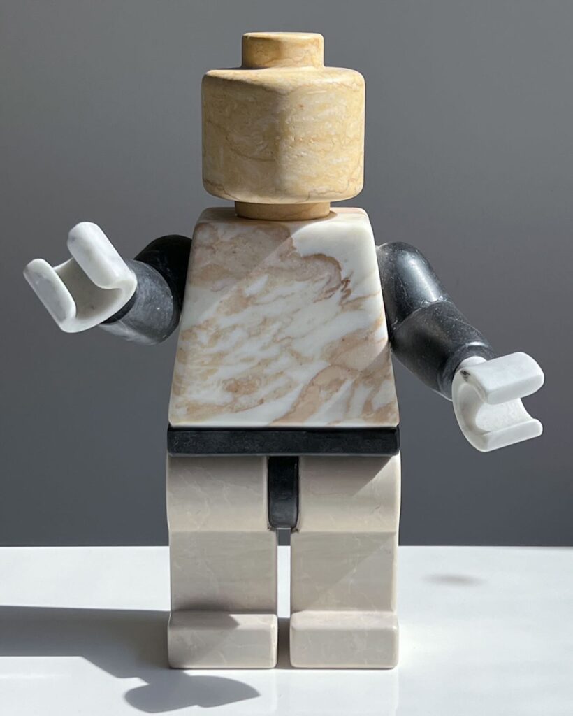 Depuis des années, Beppe Borella détourne les icônes de notre enfance pour les figer dans le marbre. Des figures surdimensionnées, à la fois ludiques et monumentales. Le contraste est marqué entre la légèreté du souvenir et la dureté de la pierre. Une réflexion sur la société contemporaine, ses mythes, ses nostalgies, rendue intemporelle par le matériau.