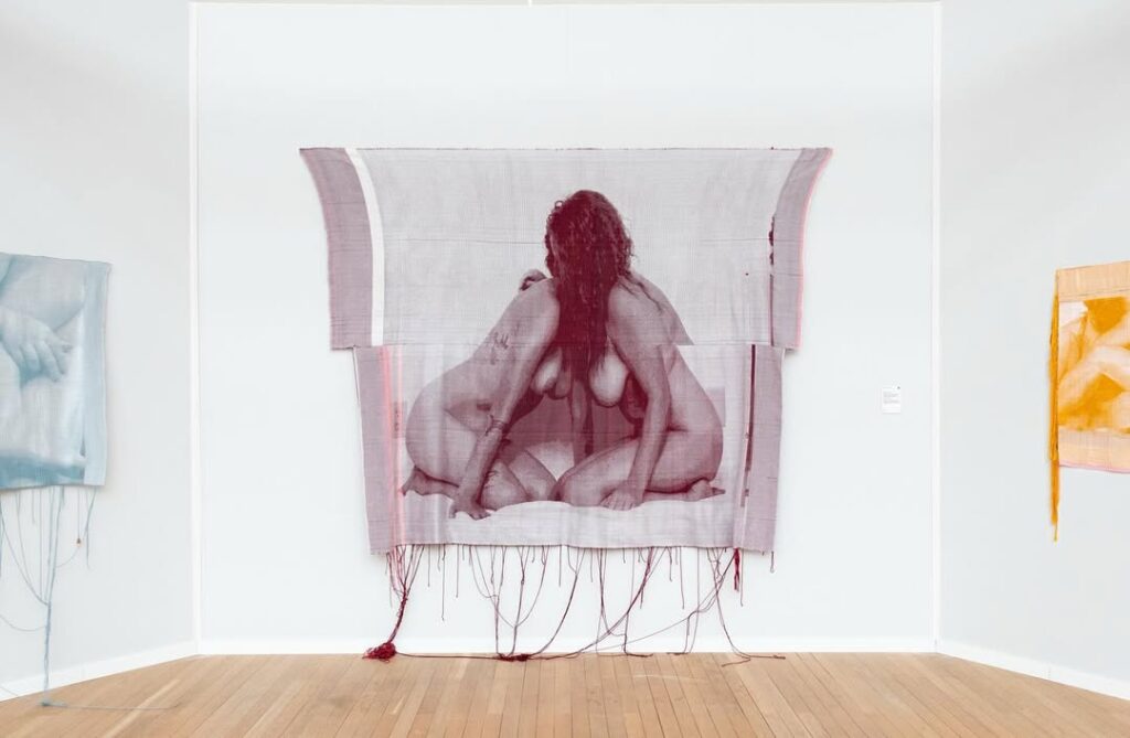 L’esthétique de la réparation s’impose dans cette édition. Chez Mia Weiner, le tissage devient un acte de soin : ses compositions photographiques traduites en fils, ponctuées de “glitches” ou de ruptures, incarnent une radical softness qui résiste et milite contre la conformité. Sa pratique transforme l’image en moment délicat, fragile, presque vivant.