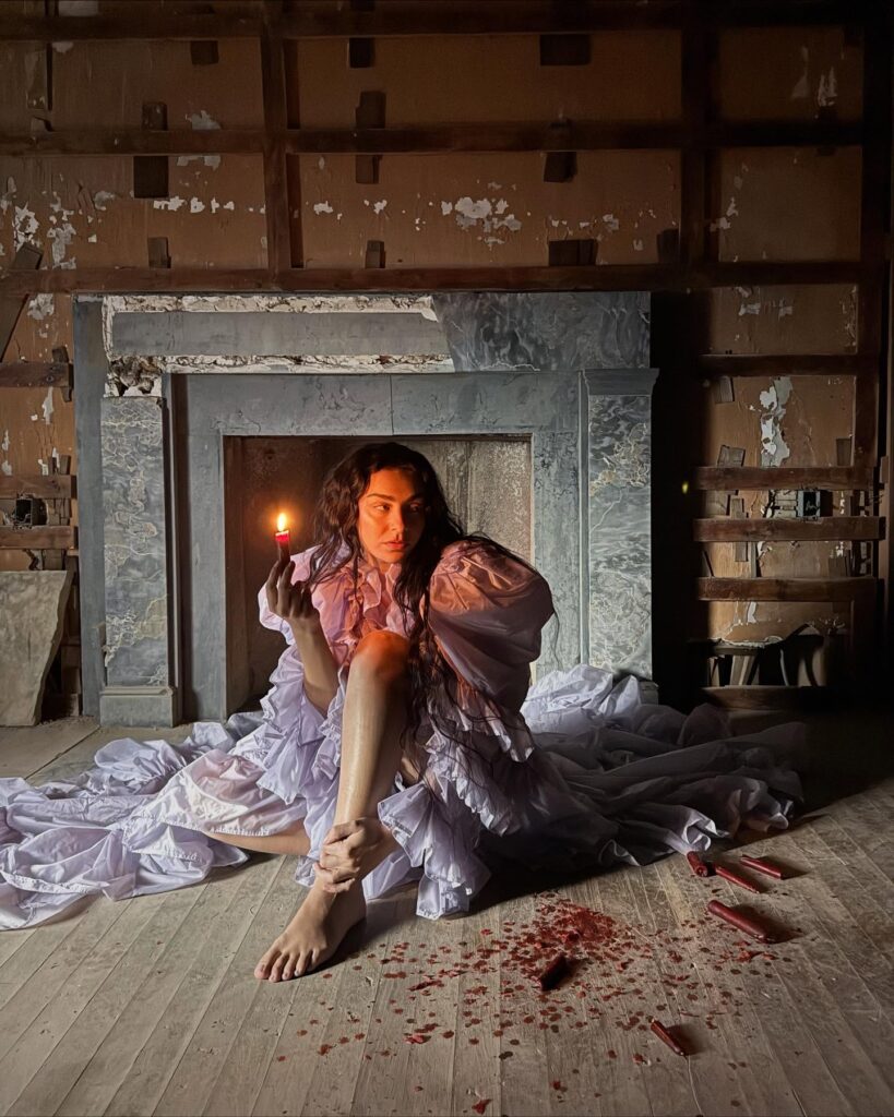 bande originale du film « Hurlevent», qu’elle livrera sous forme d’album, comme elle l’explique sur l’application Substack : «Je veux plonger dans un univers résolument brut, sauvage, sexuel, gothique et torturé. Un monde à l’opposé de la vie que je mène.»